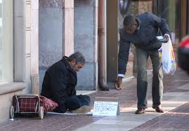 por la calle y vi un pordiosero pidiendo monedas, palpe mi billetera con temor